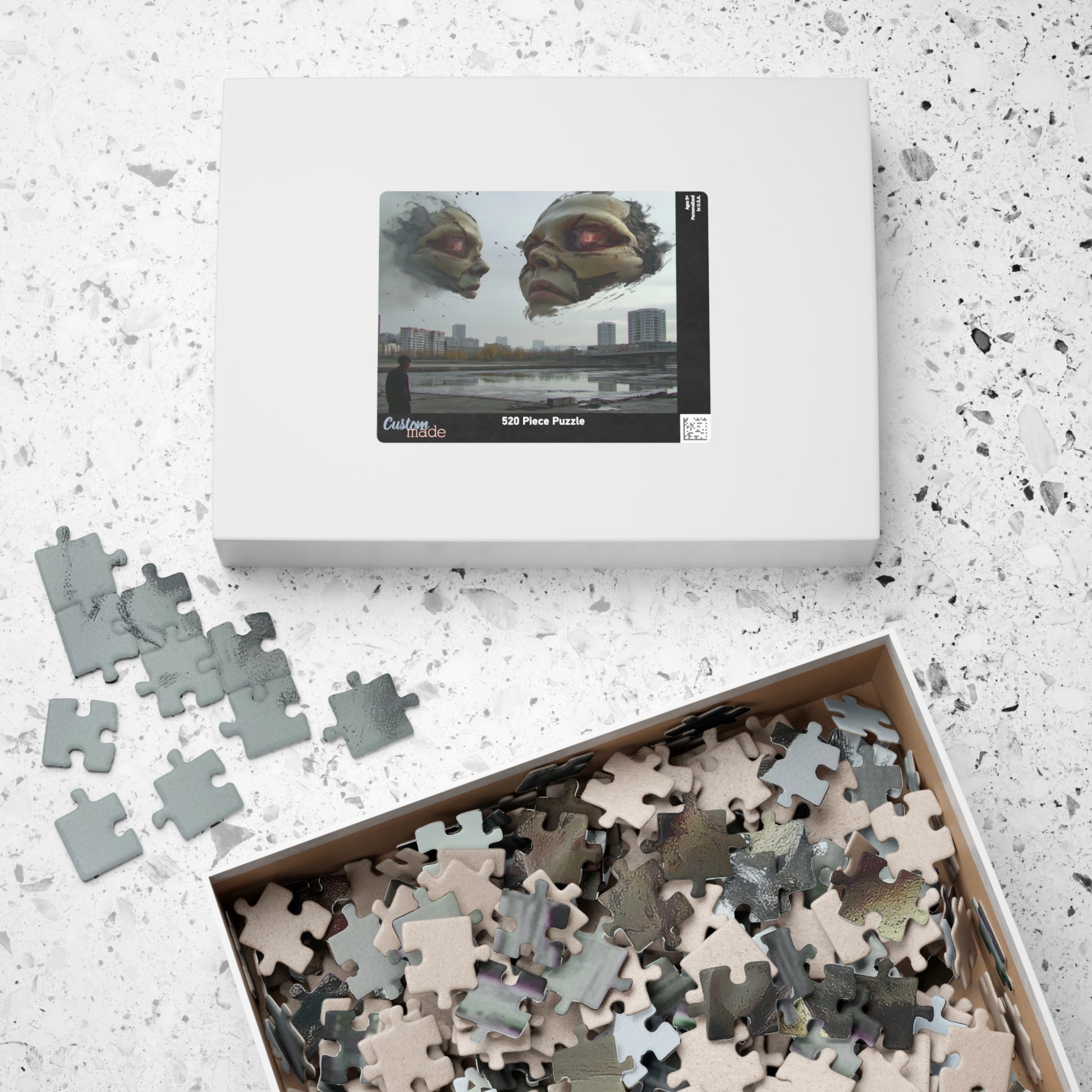 Drifted Souls captures a haunting collision between the seen and unseen, where the remnants of once-human forms loom in the sky like fractured memories. The colossal faces, eroded and glowing from within, drift above a desolate urban landscape. Their cracked expressions and ghostly presence suggest a lingering sorrow, as if the city below has long forgotten them—but they remember everything.